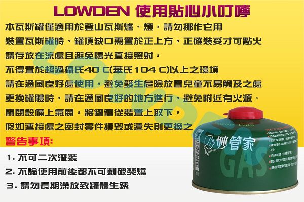 ![[LOWDEN露營戶外用品]妙管家高山瓦斯罐230g (HKCG-230) 1](http://www.yanxun.com.tw/archive/image/product1/images/image_fc7827c_001_.jpg)