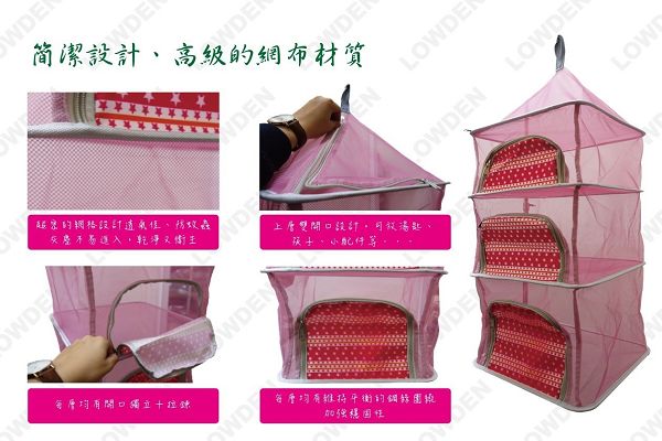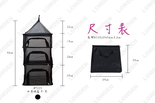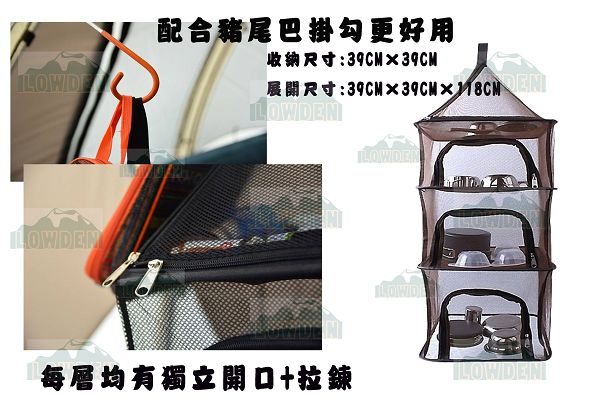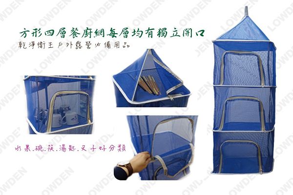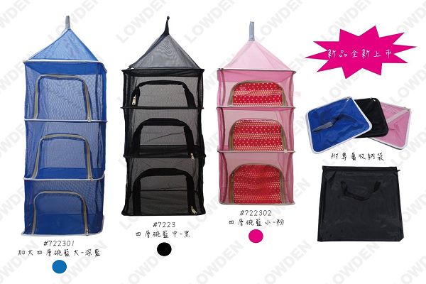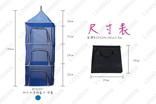 LOWDEN 彩色加大四層曬網 網籃 附收納袋 餐具曬網 餐廚網 餐廚籃 餐具吊籃 碗籃 鳥籠 餐櫥網籃 餐具晾乾