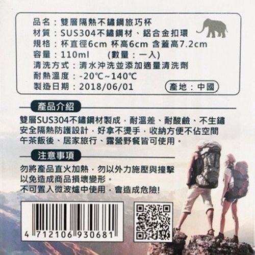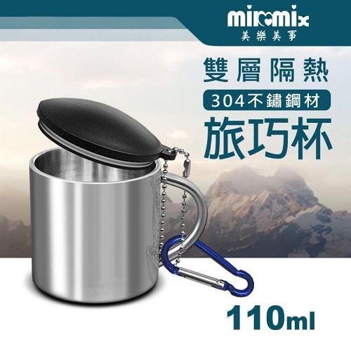 品名:旅巧杯 110ml ( 附蓋 + 鋁合金扣環 )Milomix 美樂美事 雙層隔熱不鏽鋼 304