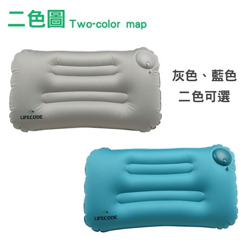 LIFECODE 大型《人體工學》手壓充氣枕(雙氣嘴快速充氣/洩氣)-2色可選 15040093灰色/15040095藍色